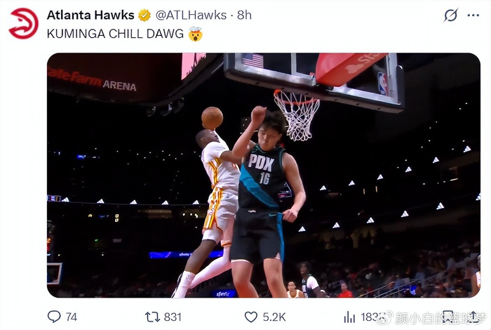 北京时间3月2日,老鹰135-101大胜开拓者拿到四连胜,这场比赛开拓者吞下赛季第二大失分耻辱纪录。这是一场毫无悬念的比赛,首节老鹰就轰下44分,开拓者一直都是被动挨打,老鹰全队两人20+与六人上双。此役的乔纳森-库明加实在是太出色了,替补登场是各种暴扣,快攻抡臂大风车暴扣,主场的球迷们疯狂的为他呐喊,老鹰官方也高呼疯狂。除此之外库明加在篮下旱地拔葱直接隔扣...